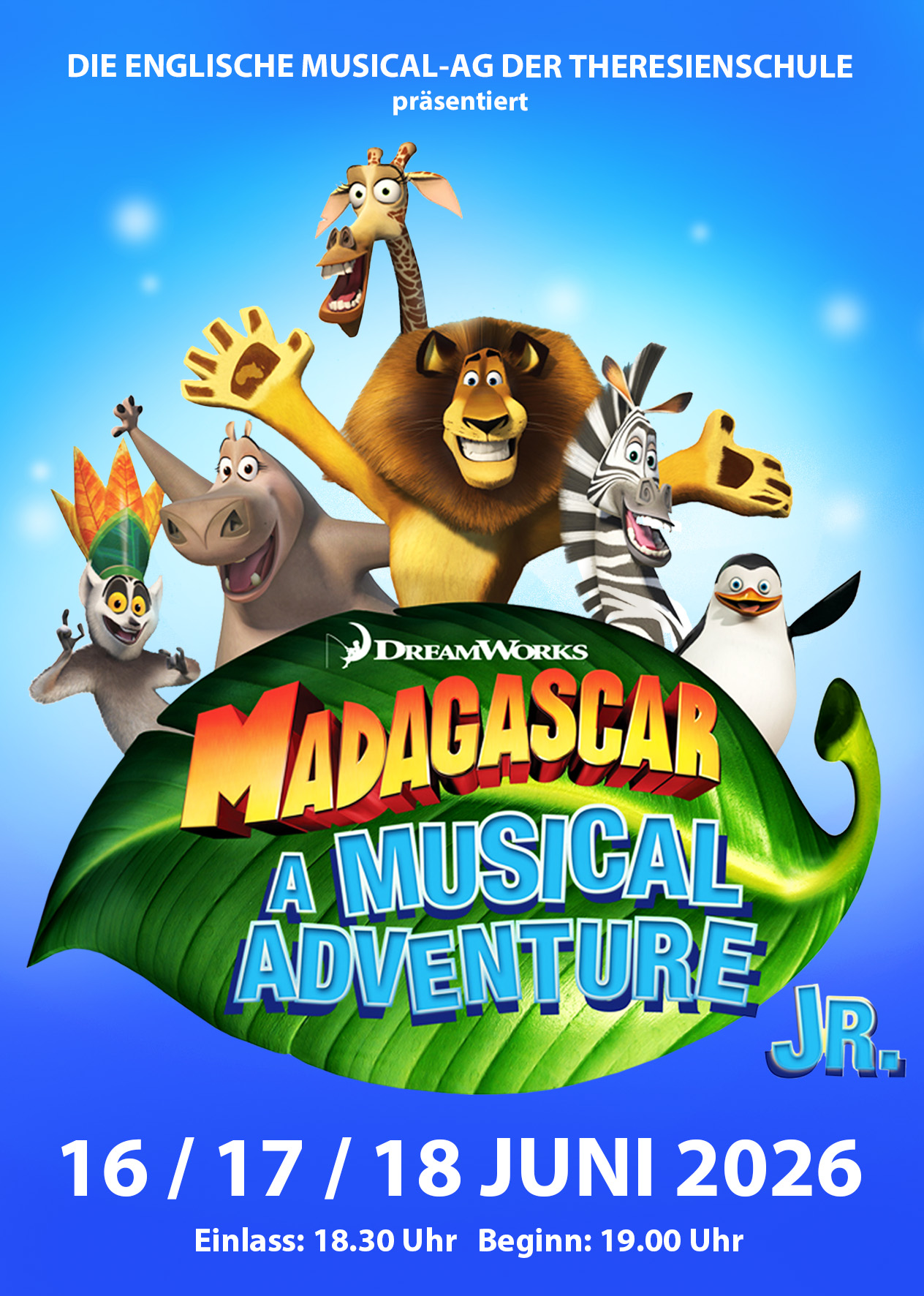 Die Musical-AG präsentiert mit Madagascar ein farbenfrohes und mitreißendes Bühnenspektakel voller Energie, Humor und großartiger Musik.